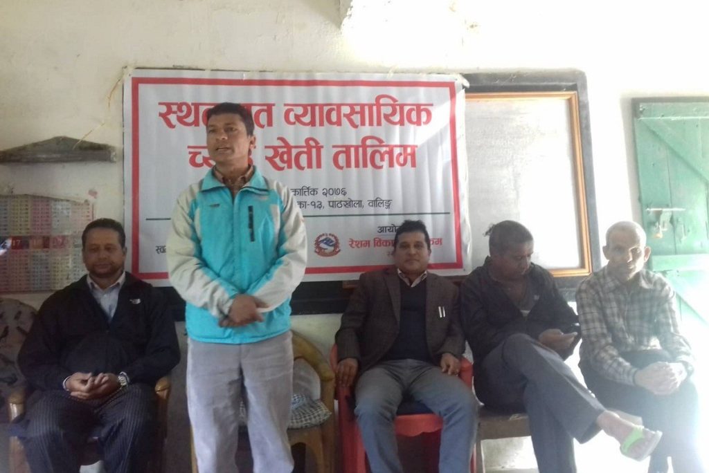 रेशम विकास कार्यक्रम स्याङ्जाको आयोजना र स्वाभीमान महिला कृषक आईपिएम पाठशालाको समन्वयमा तालिम शुरु भएको हो ।