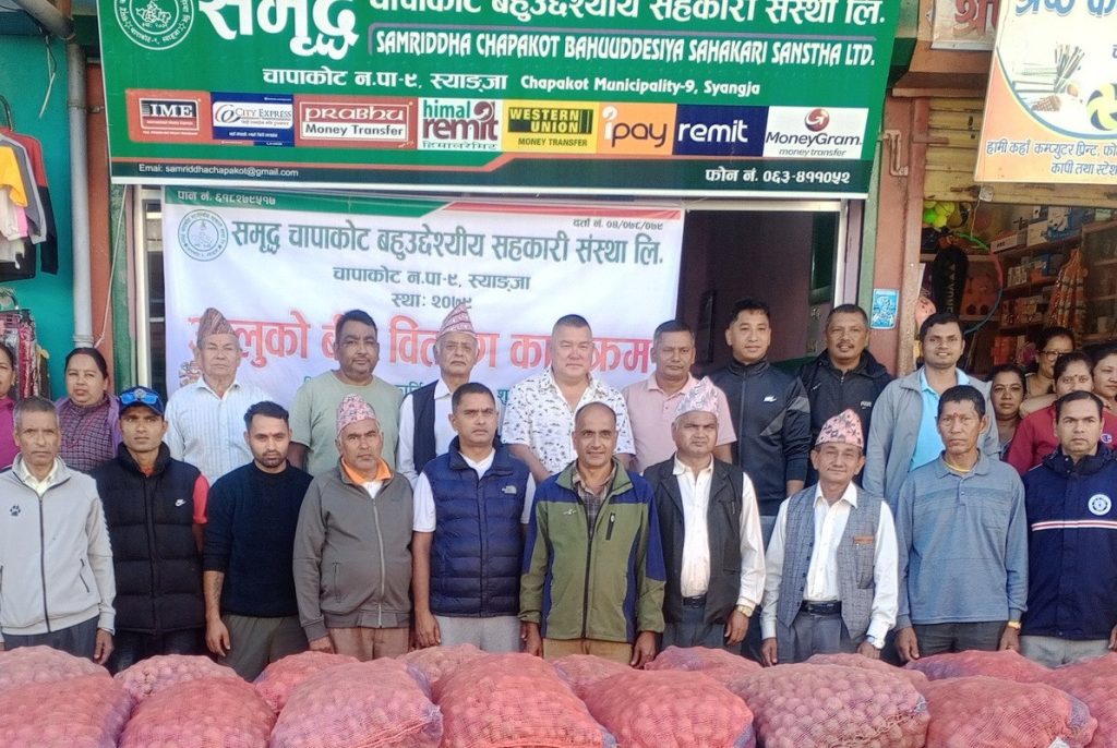 स्याङ्जाको चापाकोट नगरपालिका–९ सुन्तलीटारको समृद्ध चापाकोट बहुउद्देश्यीय सहकारी लिमिडेटले स्थानीय कृषकलाई आलुको बीउ वितरण गरेको छ । चापाकोट टारको खेती योग्य जमिन जिल्लाकै आलु उर्वर भूमिका रुपमा चिनिन्छ ।