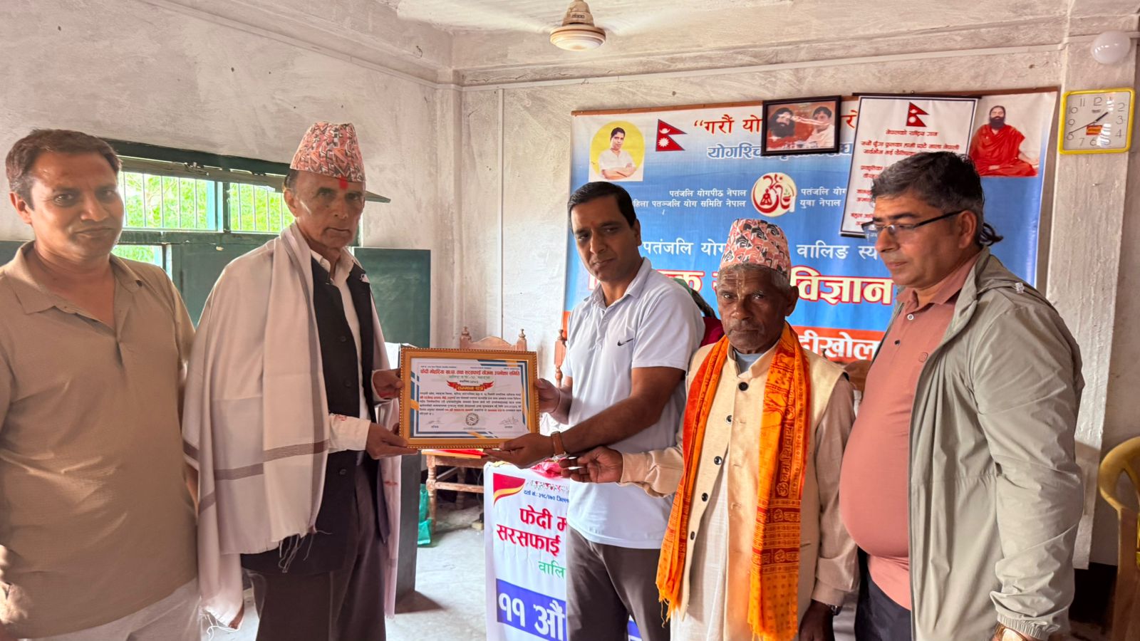 संस्थाका अध्यक्ष सूर्य प्रसाद पौडेल, उपाध्यक्ष गुरु ढकाल र सचिव हरिनारायण डुम्रेले गैह्रे र पंगेनीलाई दोसल्ला ओढाएर प्रमाणपत्र सहित सम्मानित गर्नु भएको हो ।