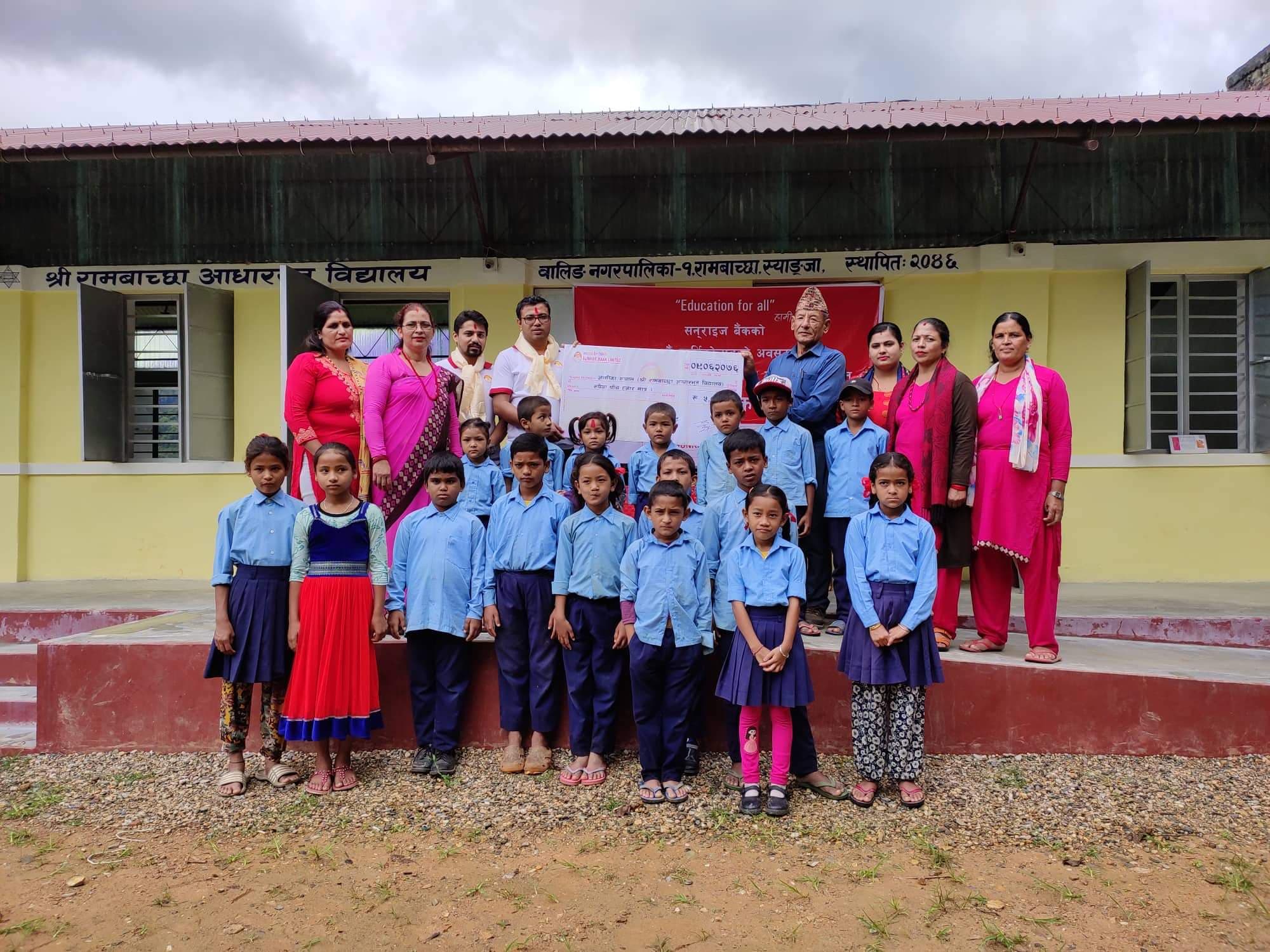 सनराईज बैंकद्धारा स्थापना दिबसका अवसरमा बिद्यालयलाई आर्थिक सहयोग ।